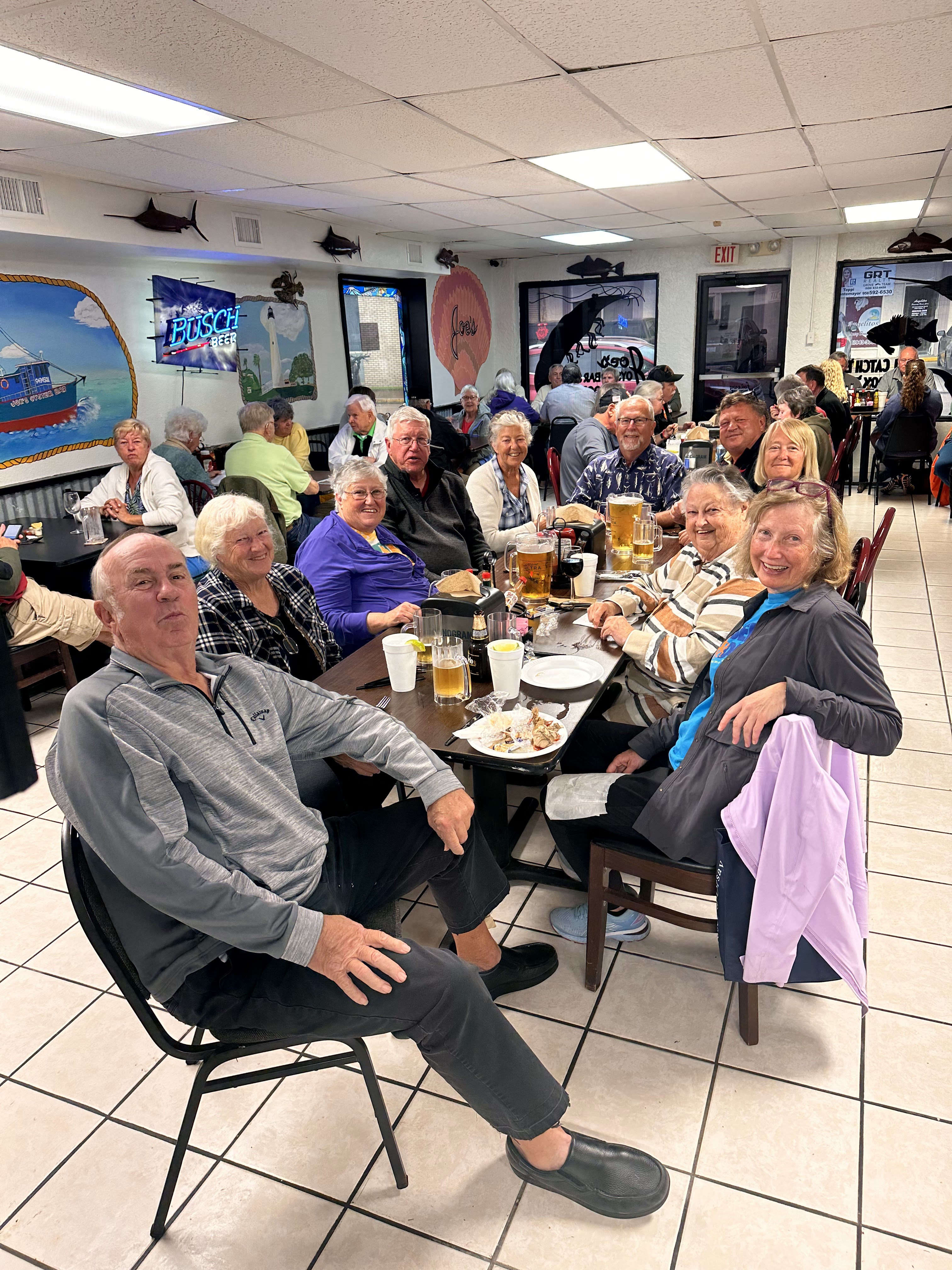 Up early for DAB. We're out of eggs, so Denny is headed to Gordon's. Jean took Nancy to choir. I went with Bruce to fish. It was a gray day, but I enjoyed spending time just watching. We went to eat at at Joe's at 5. Nancy, Bruce Gail, Jane Denny, me, Jean, Arlan, and Meg.