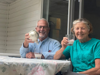 After church the airbnbers were still here. We visited over an hour. About 3, I went to the visitation for Donna R.'s mother. At home I fixed chicken salad. We love being in the bunkhouse. Replacement gift came fro Meg. Bless her heart. Uffda for me. Anabel in KISC learning activity.