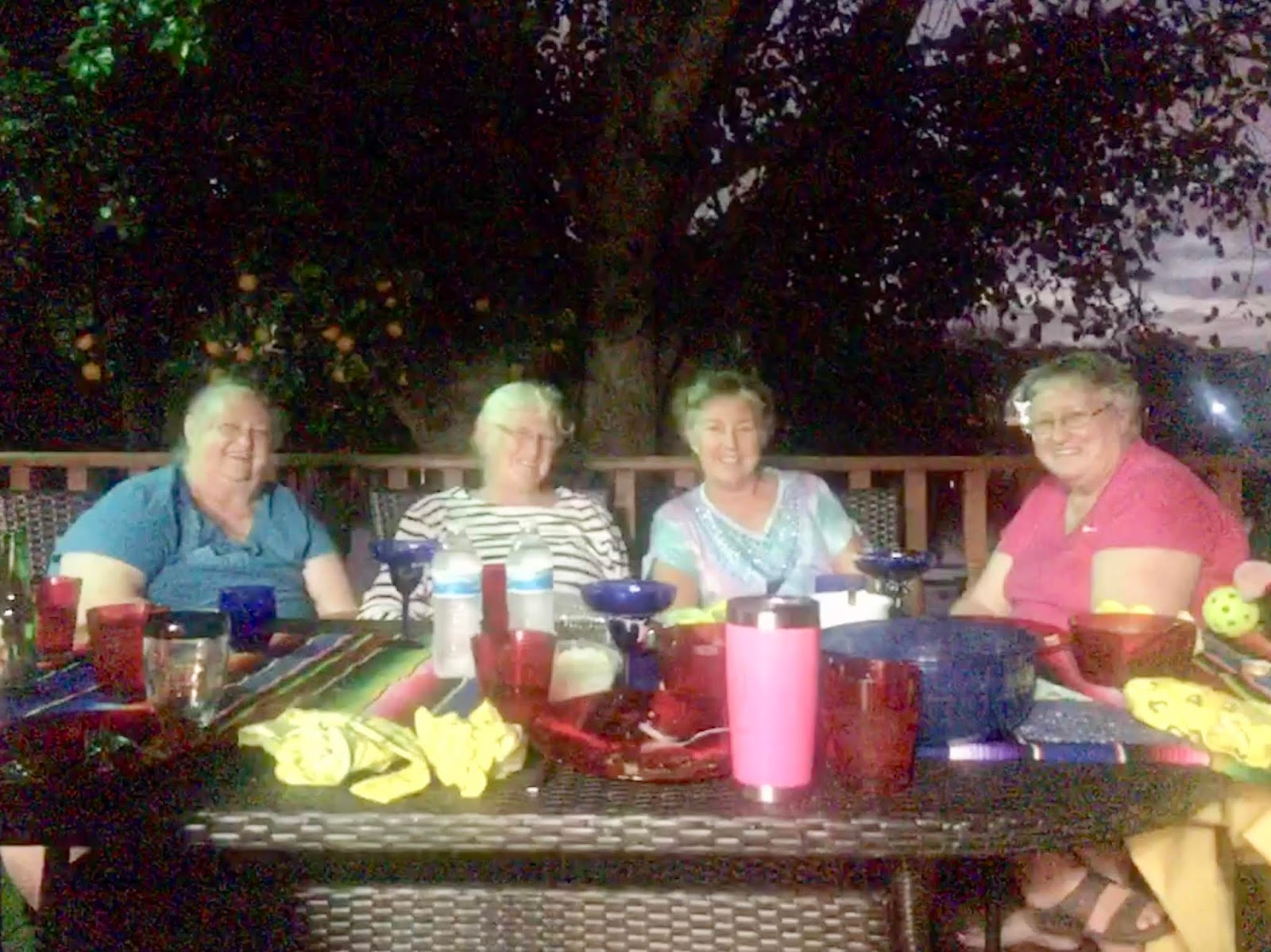 Nancy rode with Schrums to church. We chilled. Church at First Baptist started at 10:45. After church we stopped at Home Depot and got lag screws to stabilize the umbrella. Denny cut a 2x5 inch boards to run perpendicular to the deck boards. The screws went thru the deck to the board under the deck to SUPER stabilize!!!. Denny smoked some chicken breasts for us and Schrums. Gloria came to eat. The deck umbrella works great. We used to have a HUGE tree in our back deck area.